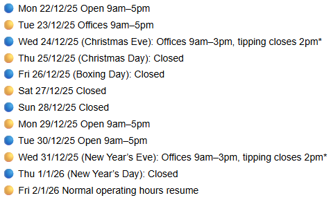 *Note, our Baltic Street and South Tees sites close at 2pm so the last tipping time will be approx. 1300hrs.